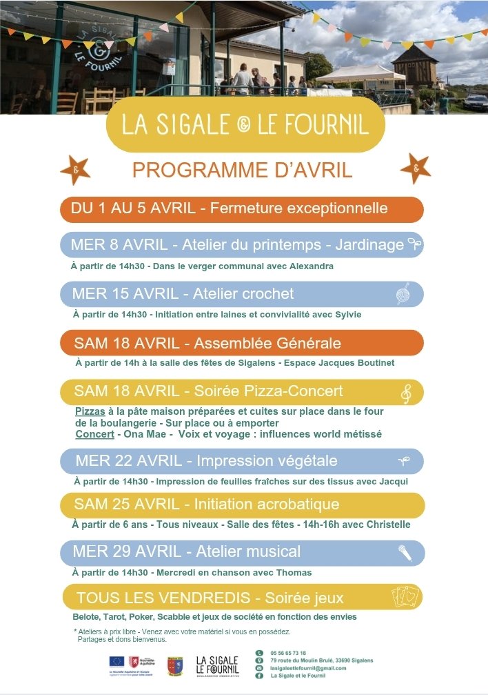 L'association La Sigale & le Fournil vous présente sa programmation d'Avril ! 🎊
